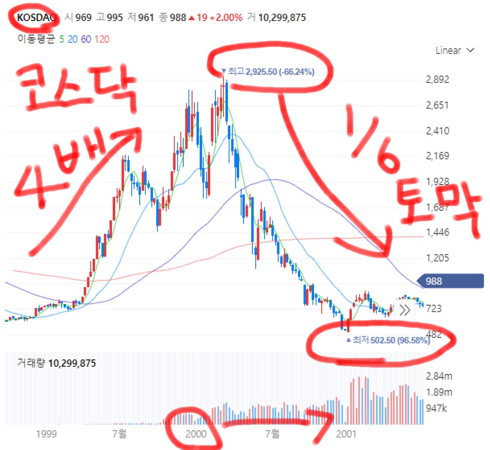 끝으로, 2000년 당시 코스닥 차트 한장을 남기고 글을 마무리한다.