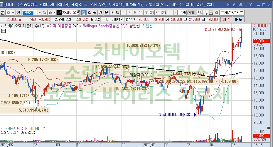 미국 증시 바이오주 소렌토 테라퓨틱스가 나스닥에서 하루에 158% 급등했다. 이유는 코로나 바이러스 치료제 때문이다. 소렌토가 보유한 항체 중에 하나가 코로나 바이러스 억제율 100% 결과가 나왔다는 소식 때문인데. 상하한가 없는 천조국 클라스를 보여주면서 158% 날아올랐다.